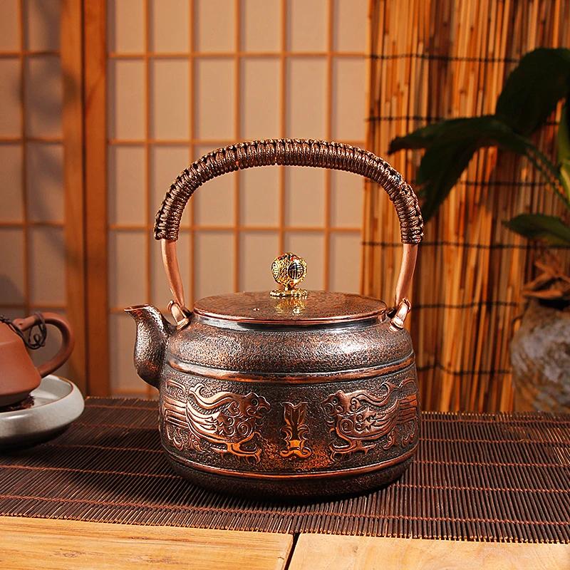 Чайник ручной работы Восемь сокровищ Чистая медь Seiko Резьба позолоченный кипящая вода утолщенный домашний китайский ретро настольный орнамент