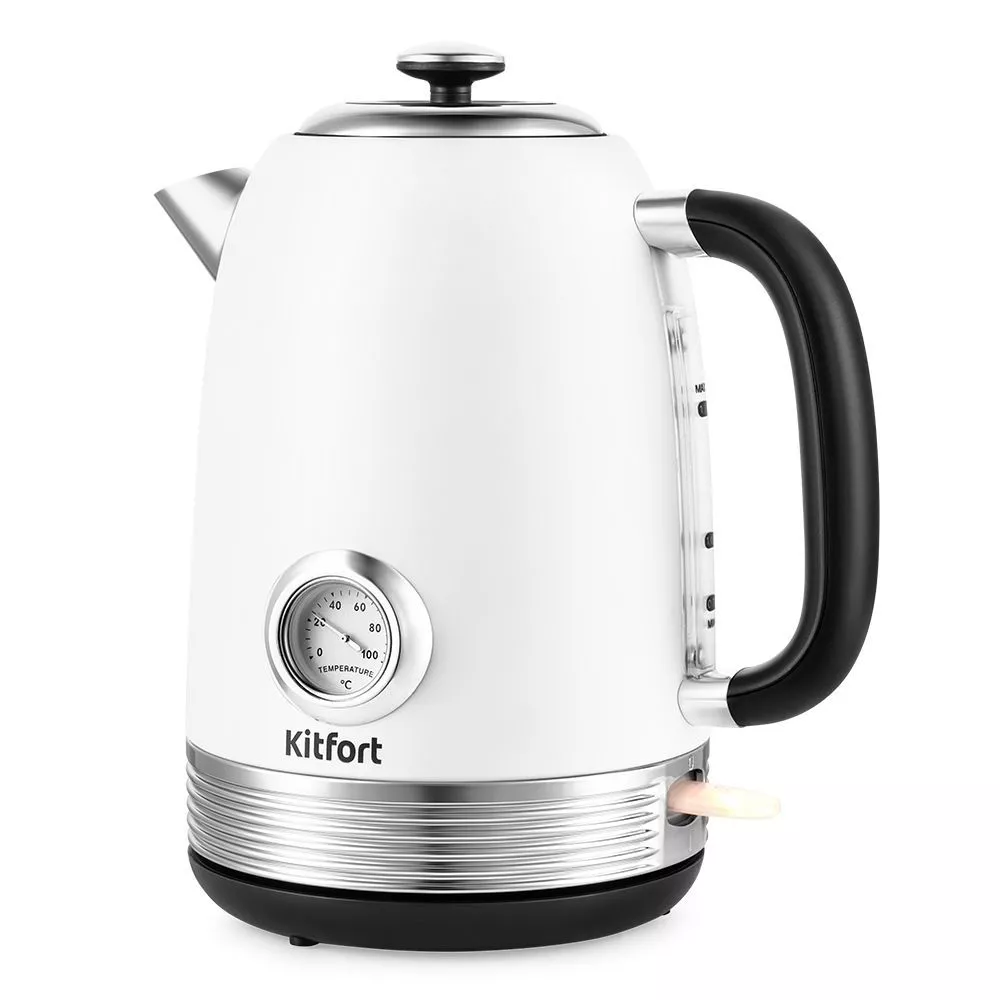 Чайник электрический Kitfort КТ-6603 1.7л. 2.2 кВт, нержавеющая сталь/пластик, белый, КТ-6603