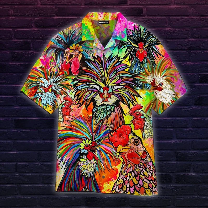 Summer Fashion Mens Hawaiian Shirts Short Sleeve Button Funny Chicken Printed Casual Beach Aloha Shirt Plus Size 6XL Hombre Ropa