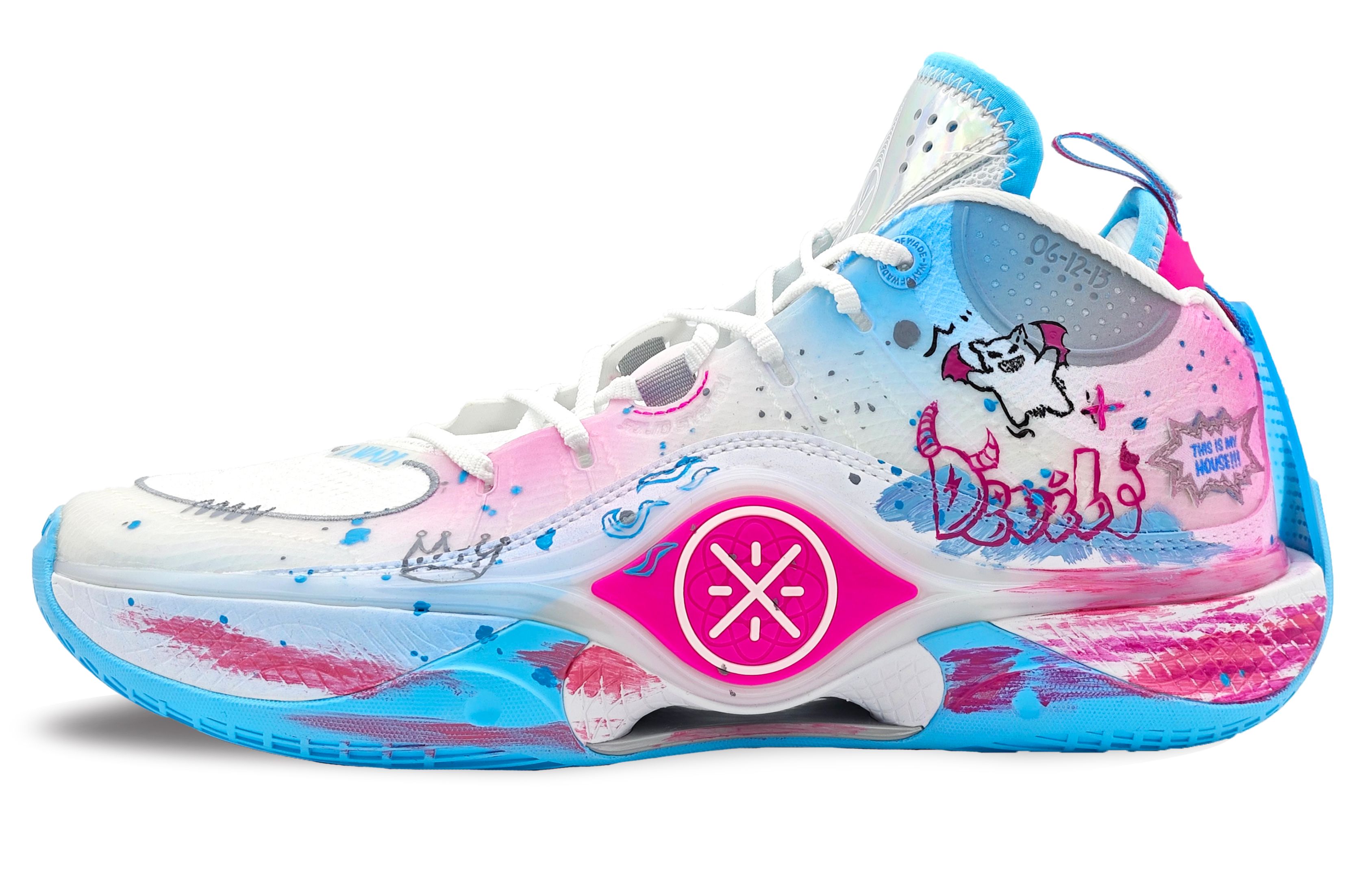 LINING Баскетбольные кроссовки Shadow 5 с износостойким покрытием, низкие, мужские, цвет синий, розовый