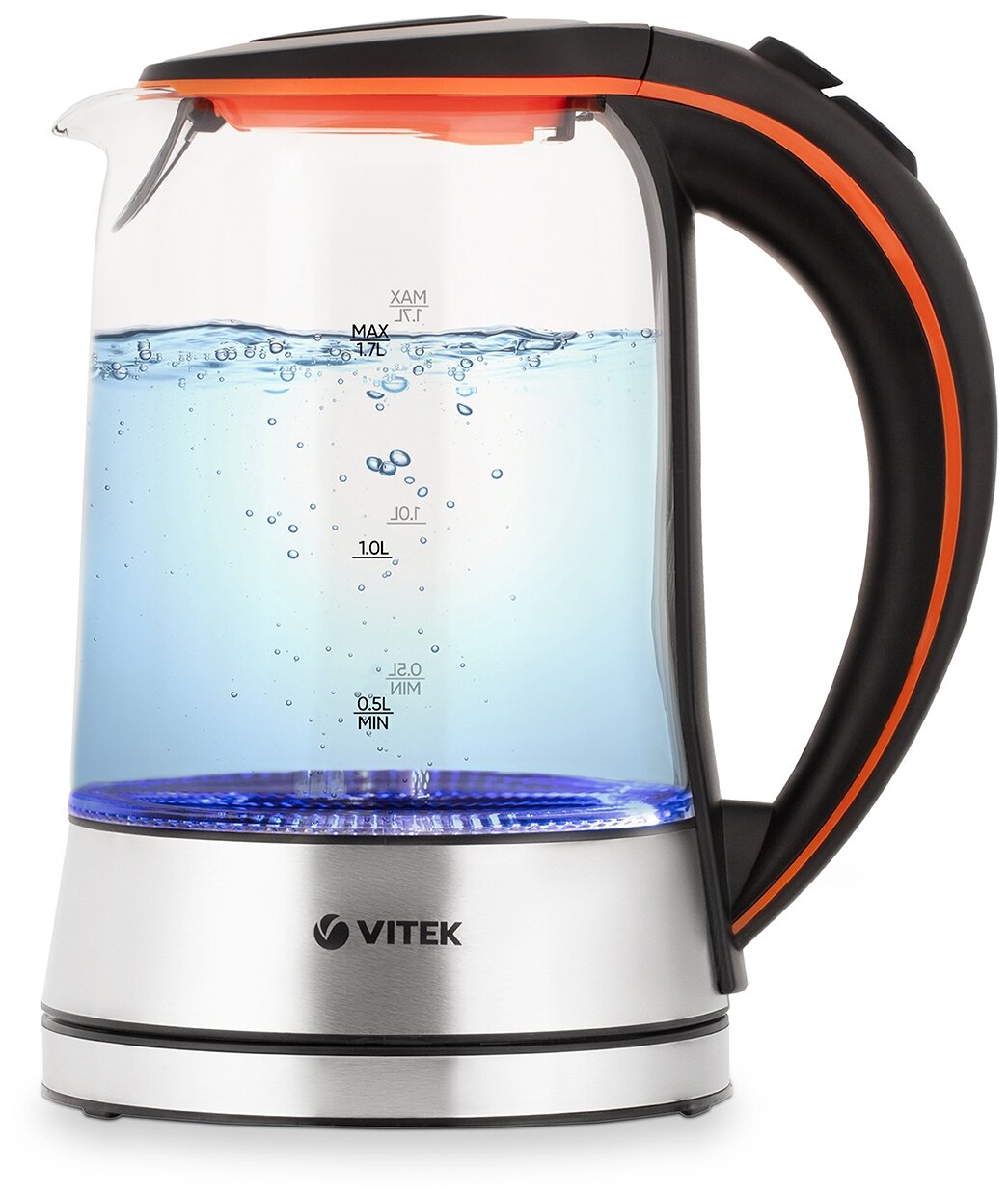Чайник электрический VITEK VT-7005 1.7л. 2.2 кВт, сталь/стекло, прозрачный (VT-7005), VT-7005