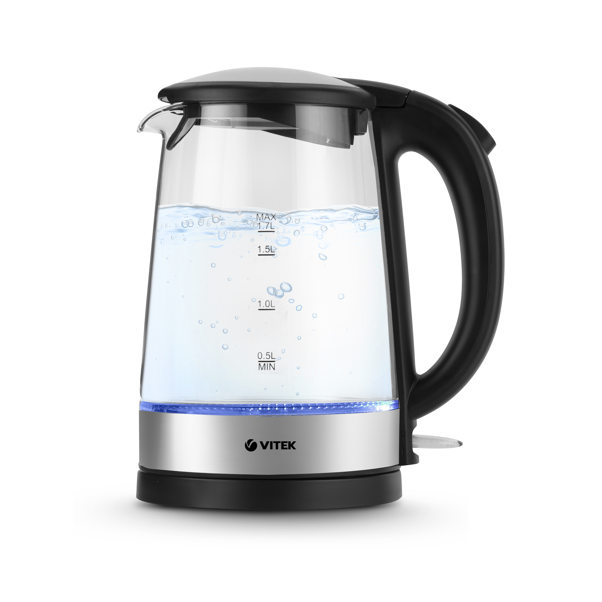 Чайник электрический VITEK VT-8810 1.7л. 2.2 кВт, стекло, серебристый/черный (VT-8810), VT-8810