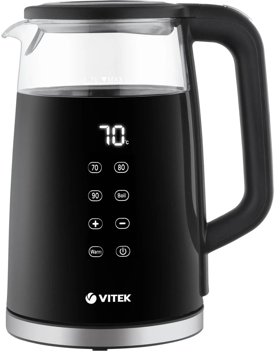 Чайник электрический VITEK VT-8827 1.7л. 2.2 кВт, стекло/металл, черный ( VT-8827), VT-8827