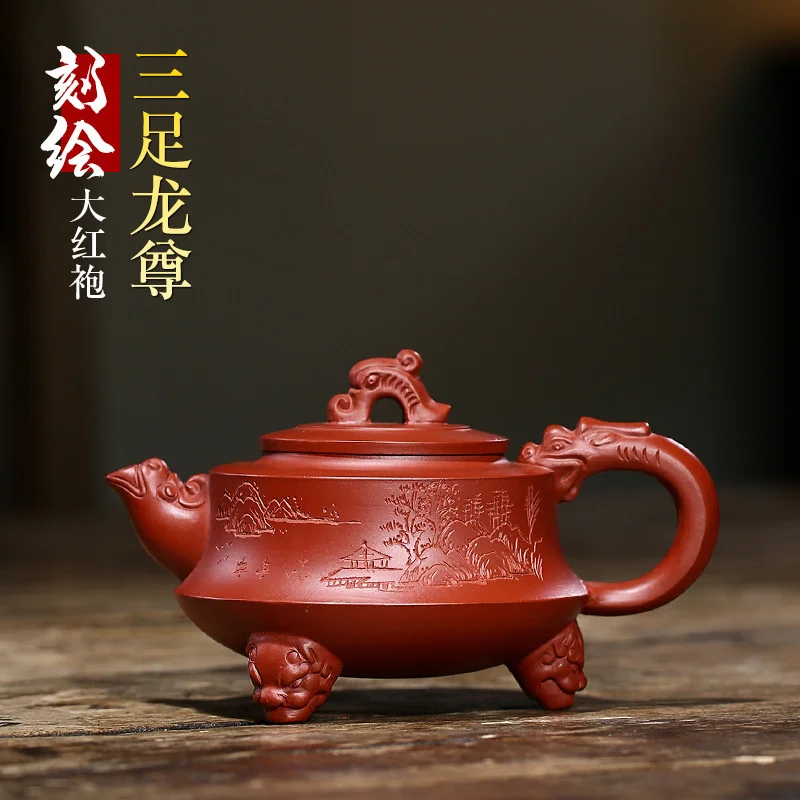 Чайник Zhiyuan из Горного университета Hongpao с фиолетовым песком, ручной чайник dragon zunpao с тремя ножками