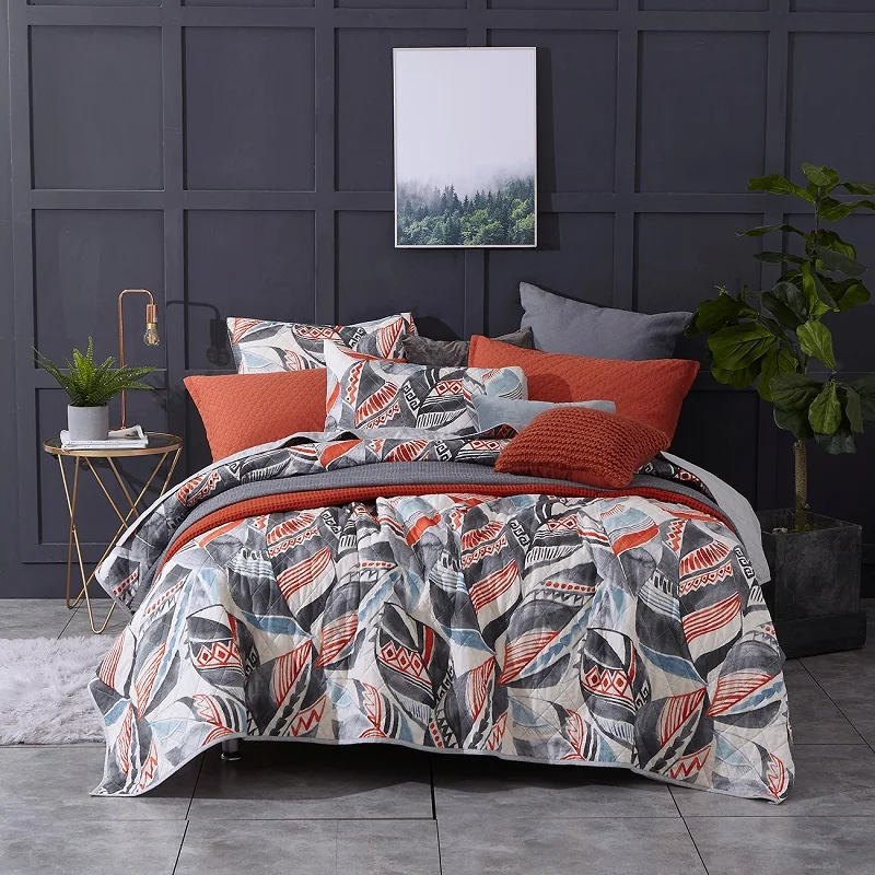 PHF Washed Cotton Sheet Set 3 Pieces Luxury Leaf Printed Comforter Lightweight Quilt Bedding Set King Queen Size