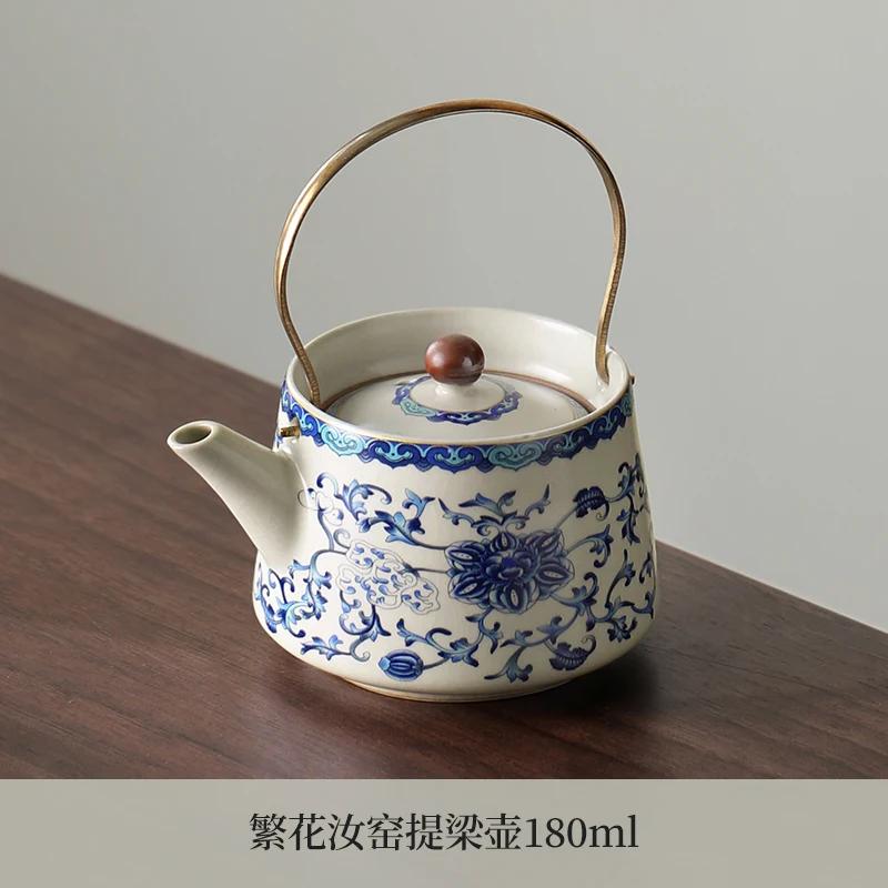Чайный сервиз из синего и белого фарфора в китайском стиле, настольный декоративный горшок, крышка, большая чашка для чая с защитой от ожогов и крышкой