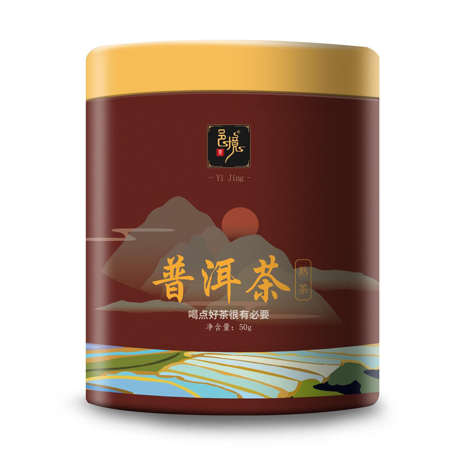 Чай Пуэр Спелый чай, круглые банки, 50 г, рассыпной чай, листья, чем старше, тем ароматнее