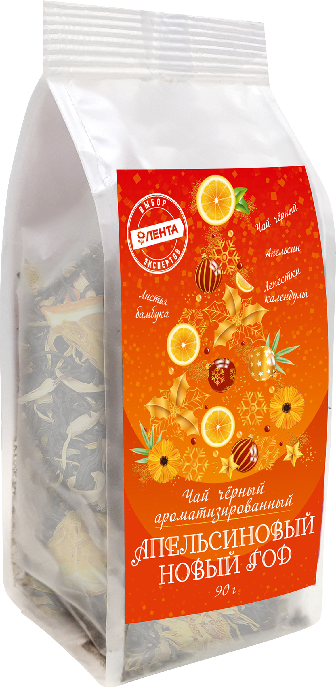 Чай черный ЧАЙНАЯ ПЛАНТАЦИЯ Апельсиновый новый год ароматизированный, листовой, 90г