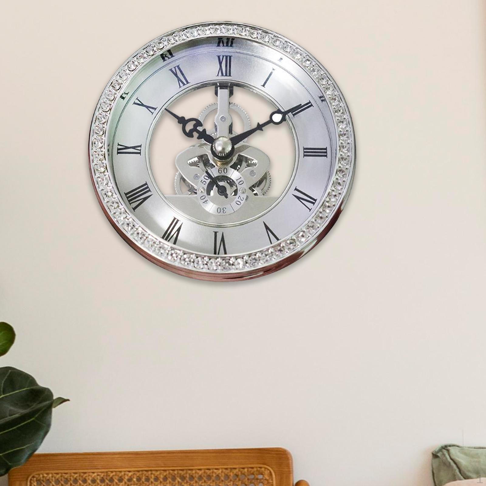 Часы Вставка Металл 100 мм Украшение Стразами Классический Стиль Механизм с Римскими Цифрами для серебряный