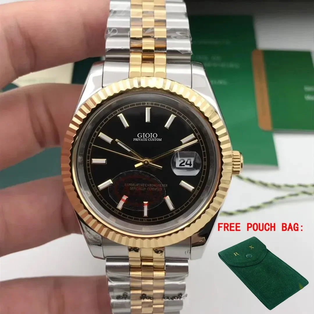 Часы Мужские автоматические механические, серебристые/золотистые/черные, с сапфировым стеклом