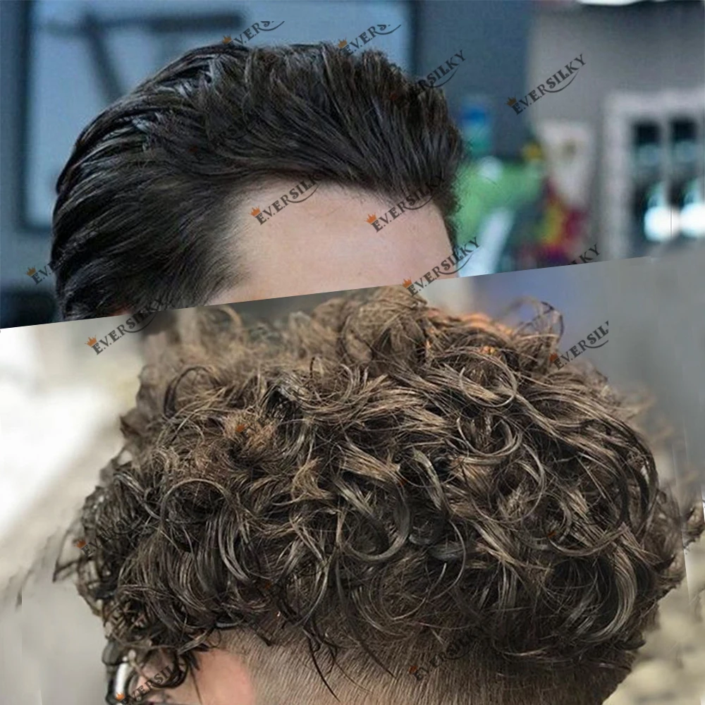 Натуральные волосы Hairline, мужской парик, волнистые/вьющиеся варианты, коричневые, черные, серые волосы, протез, система волос, замена мужских t-образных волос