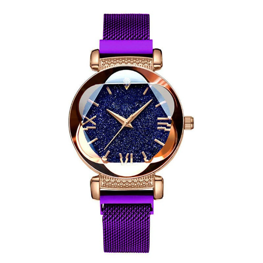 Часы женские кварцевые на магнитной застежке, элегантные модные наручные, с римскими цифрами, со звездным небом, подарок для женщин, Прямая ...