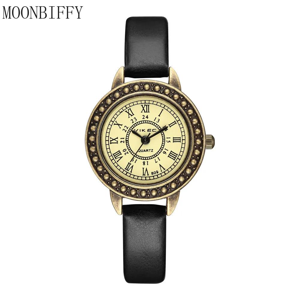 Часы женские кварцевые с кожаным ремешком, винтажные Ретро-часы с маленьким циферблатом, с тонким кожаным ремешком, с римскими цифрами