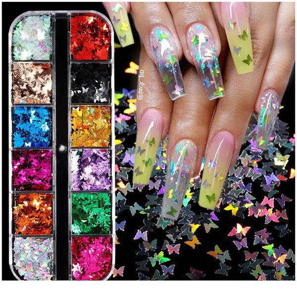 holographics nail glitter sequins butterfly pattern nail art power dust sparkly shinning flakes palliette nail dec jllxwy, Silver;gold
