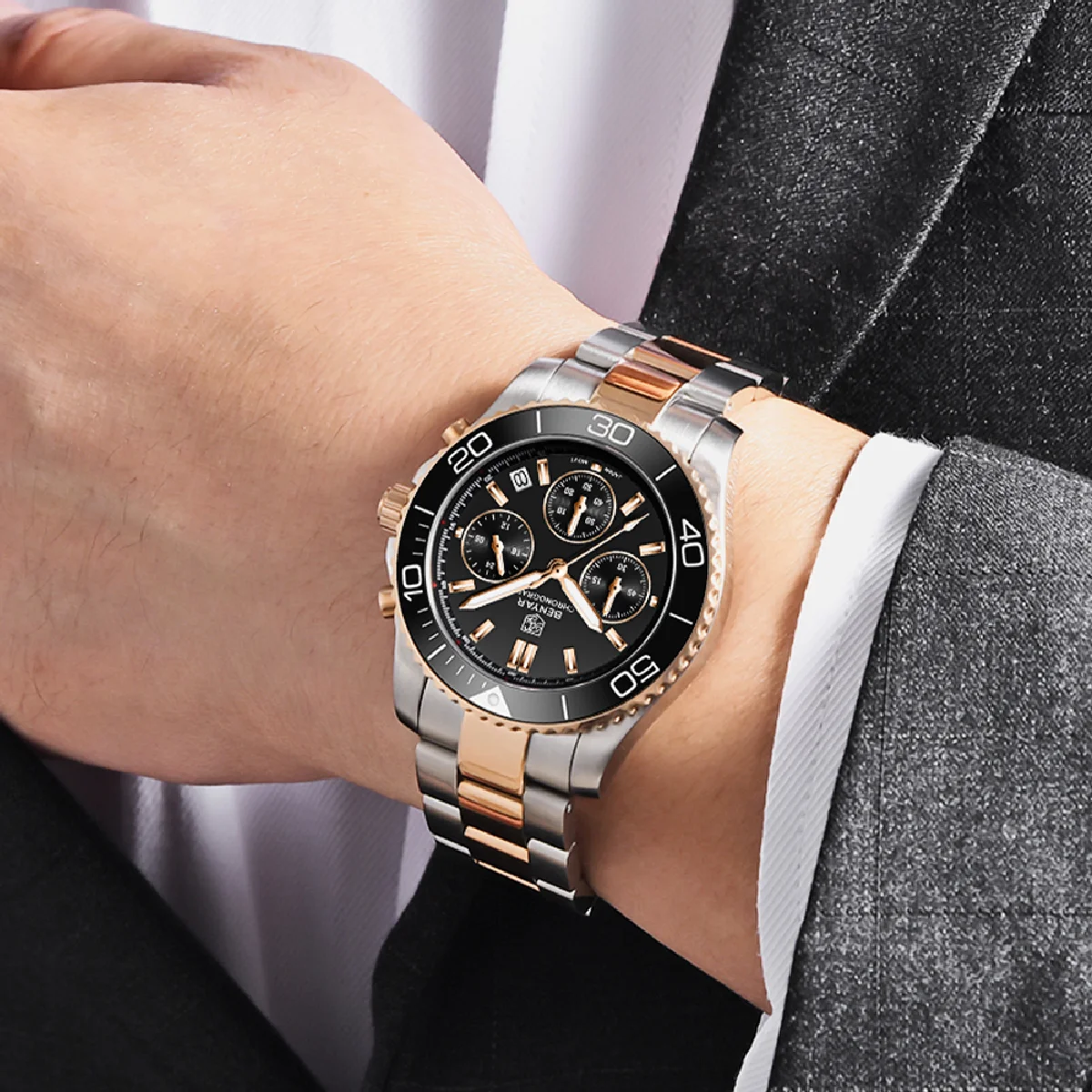 Часы мужские Кварцевые водонепроницаемые 10 бар из нержавеющей стали с сапфировым стеклом
