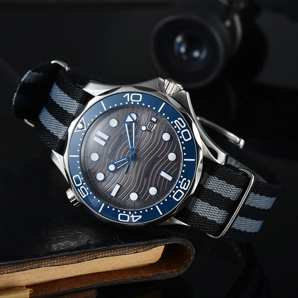 Часы мужские механические водонепроницаемые с сапфировым стеклом, из нержавеющей стали