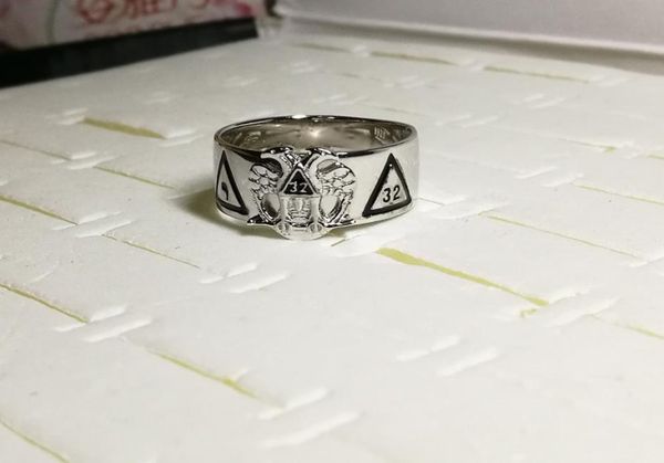 solid 925 sterling silver rhodium plating 18k gold plated men039s masonic ring scottish rite 32 degree rings with eagle wings d5214570, Golden;silver