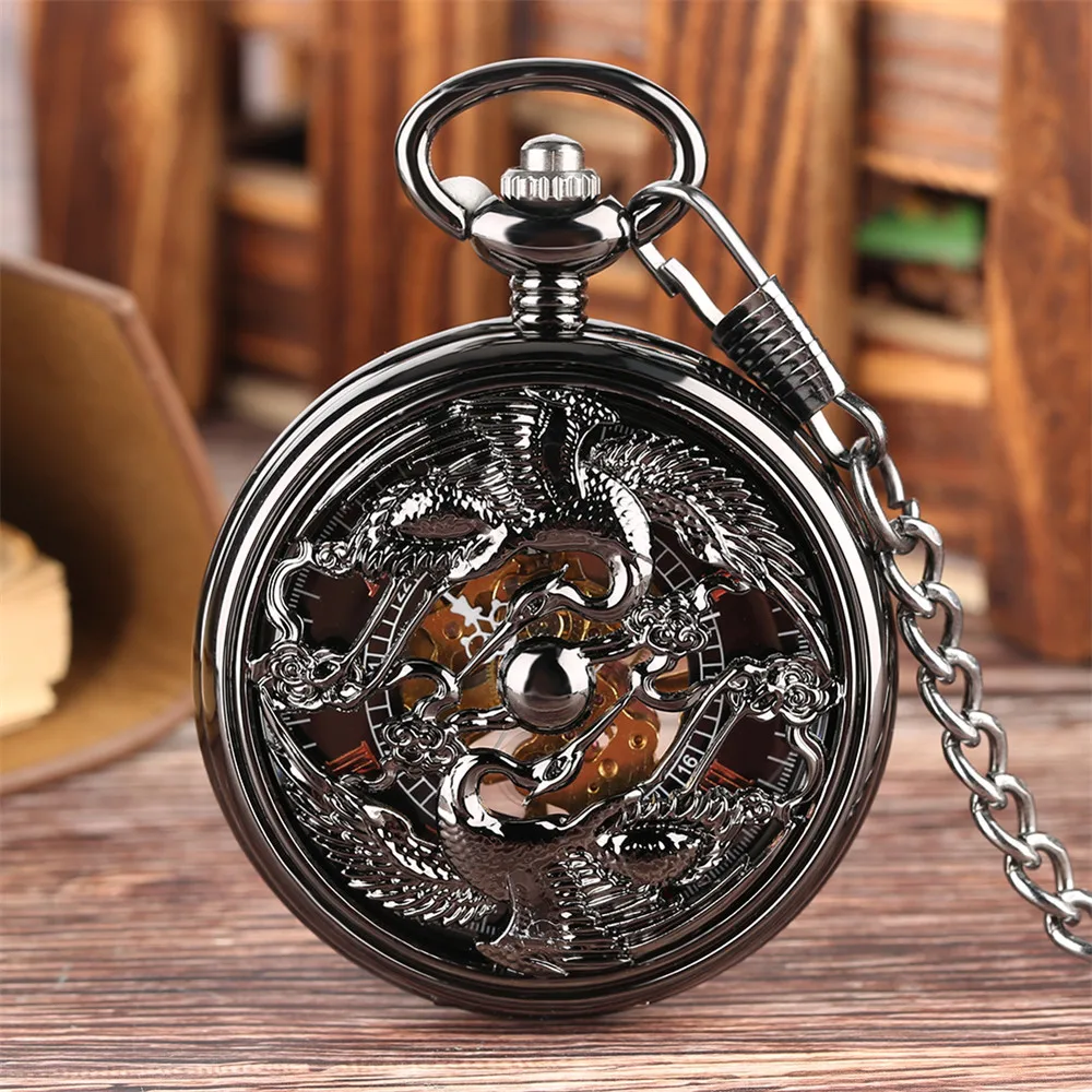Часы мужские механические с ручным заводом, винтажные карманные с подвеской в виде чёрного Журавля, птиц, с ручным механизмом, подарок