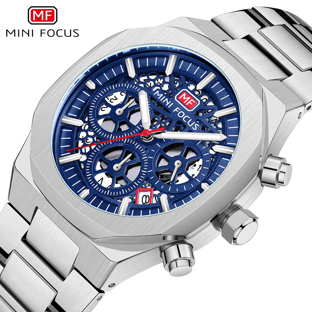 Часы наручные Мужские кварцевые, водонепроницаемые спортивные, с браслетом из нержавеющей стали