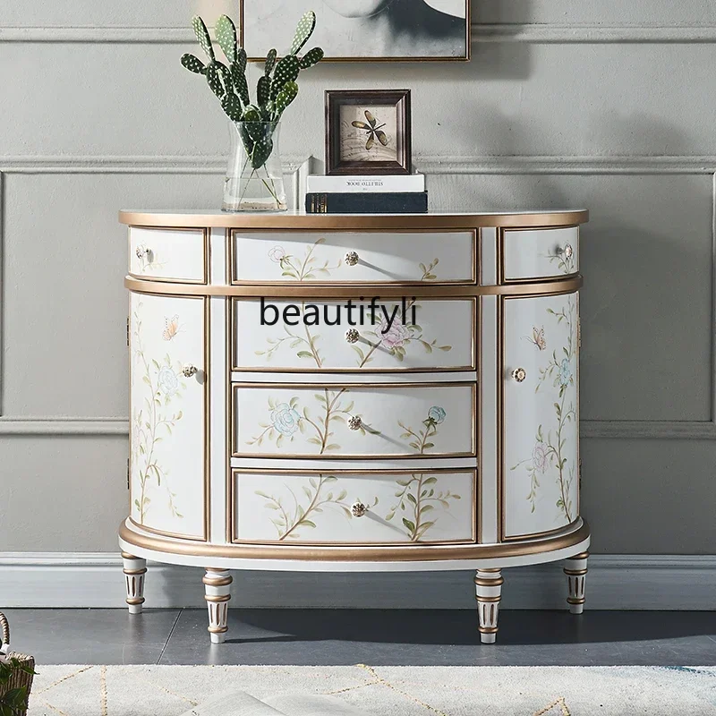 American aisle cabinet painted semi-round entrance European living room partition entry small side table French style
