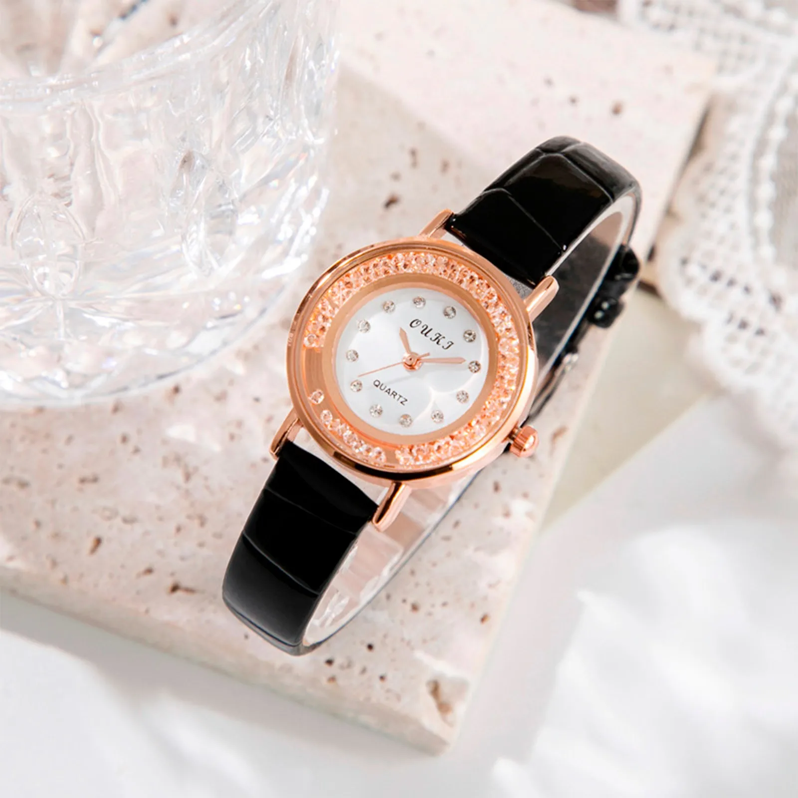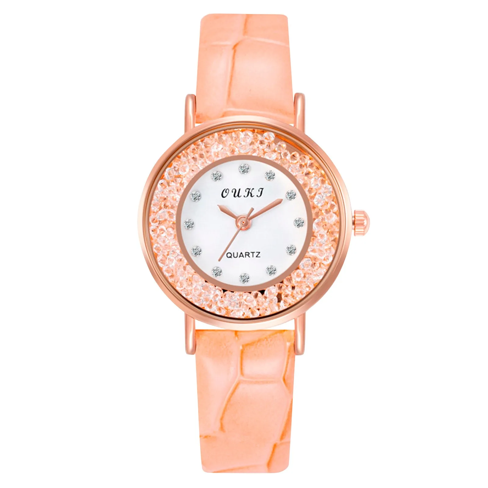 Часы наручные женские кварцевые, люксовые Модные Аналоговые повседневные, с круглым кожаным ремешком