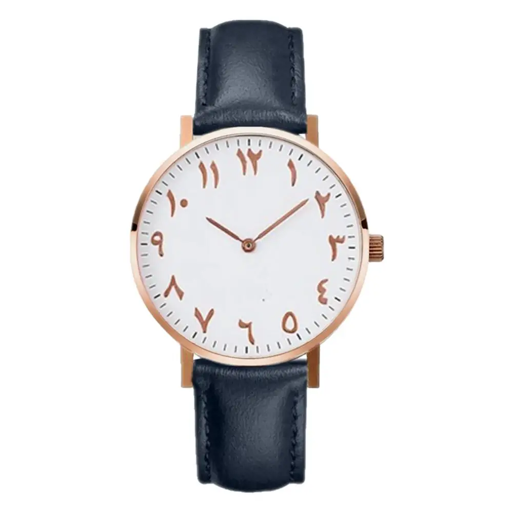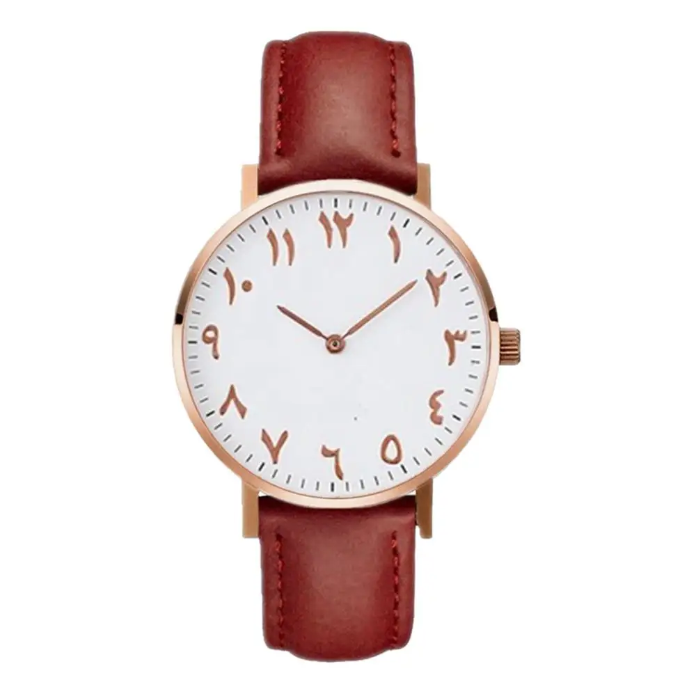 Часы наручные женские кварцевые с арабским циферблатом и кожаным ремешком