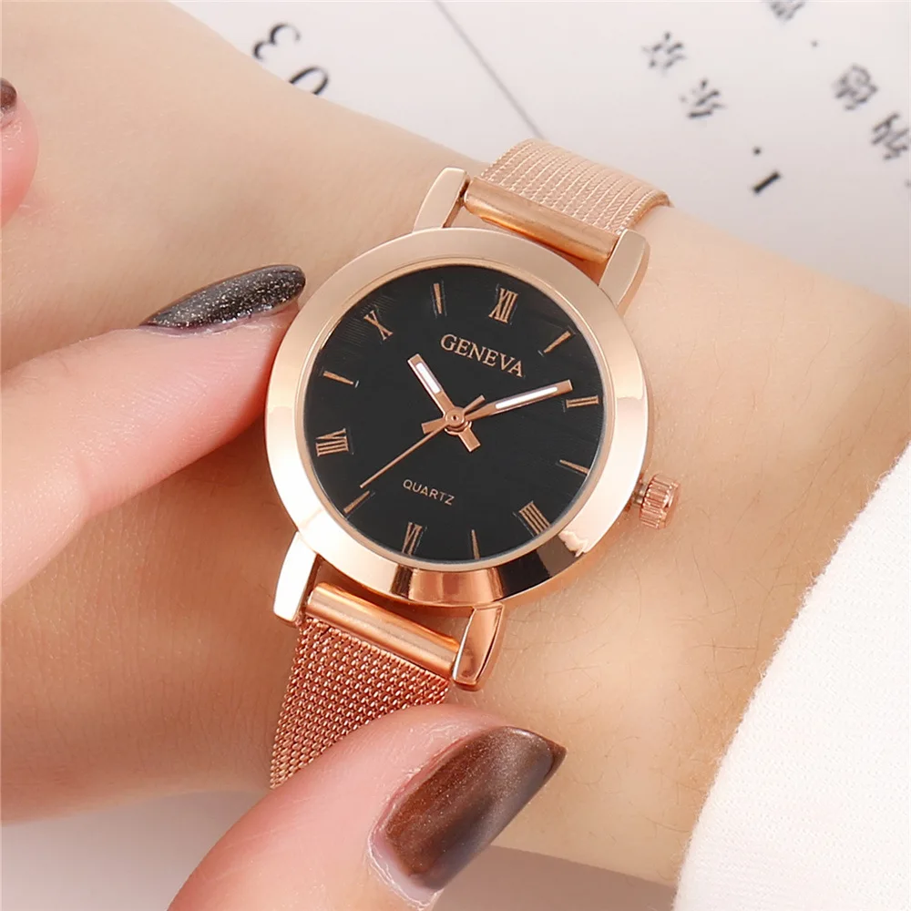Часы наручные женские кварцевые с сетчатым браслетом из нержавеющей стали