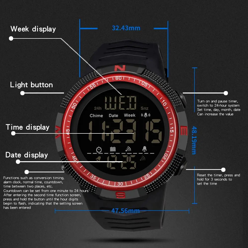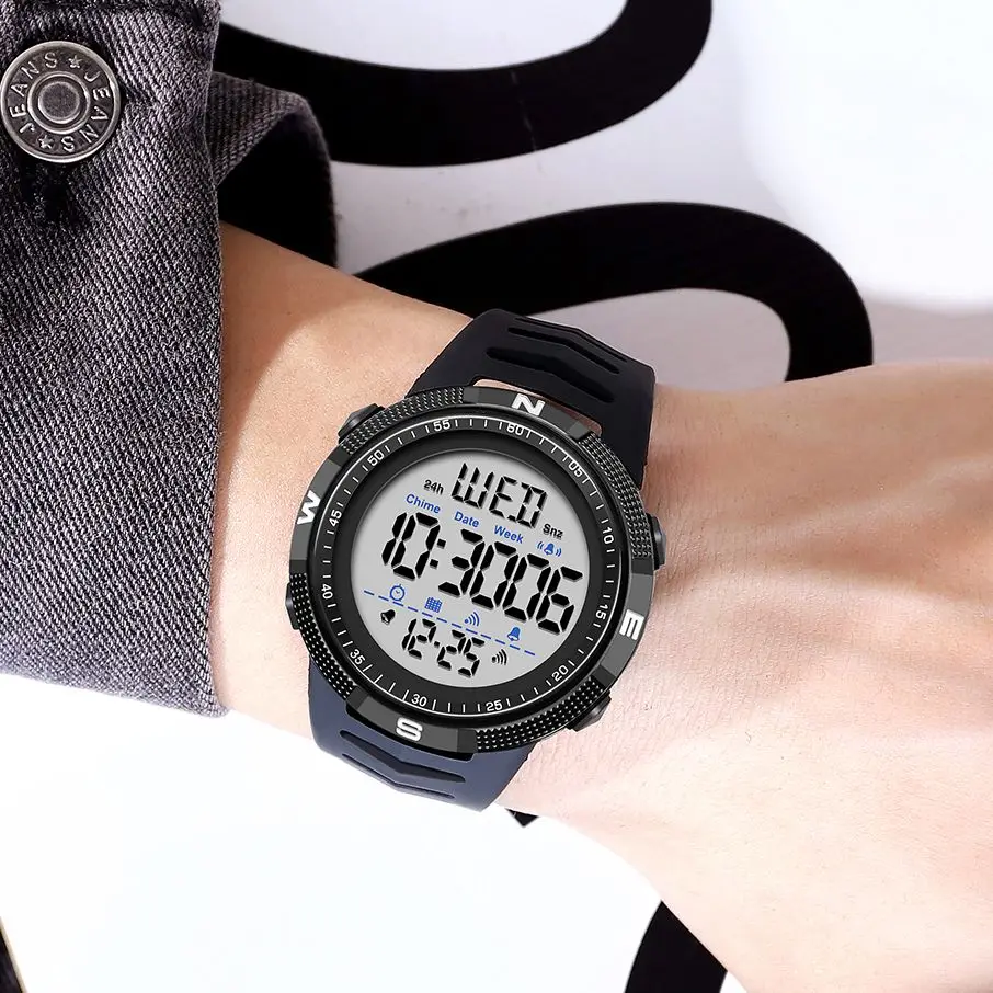 Часы наручные мужские с календарем, хронографом и будильником, водонепроницаемость 50 м