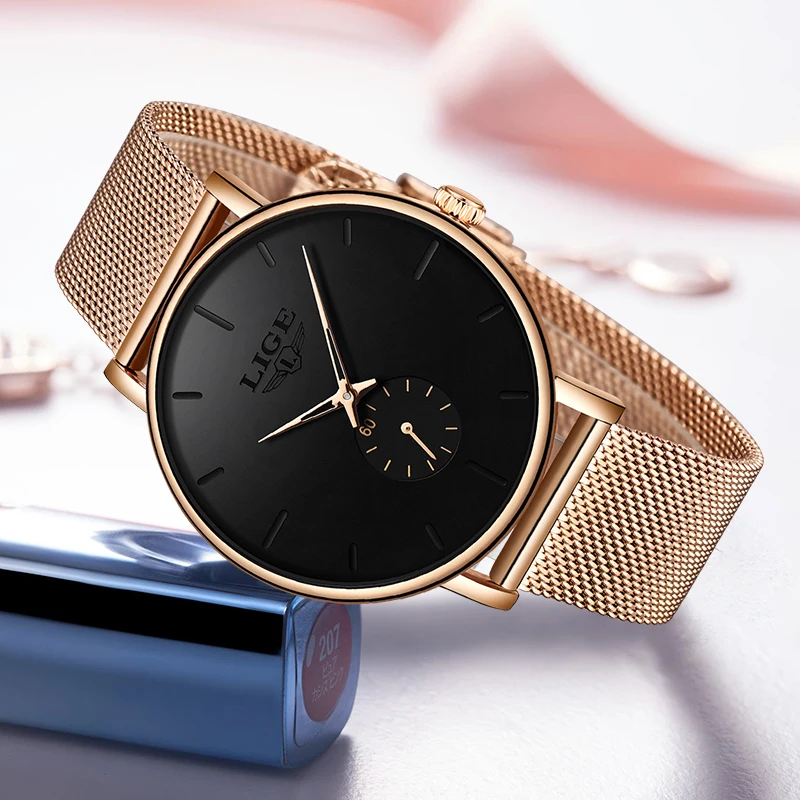 Часы наручные LIGE женские кварцевые, роскошные брендовые простые водонепроницаемые Модные Повседневные