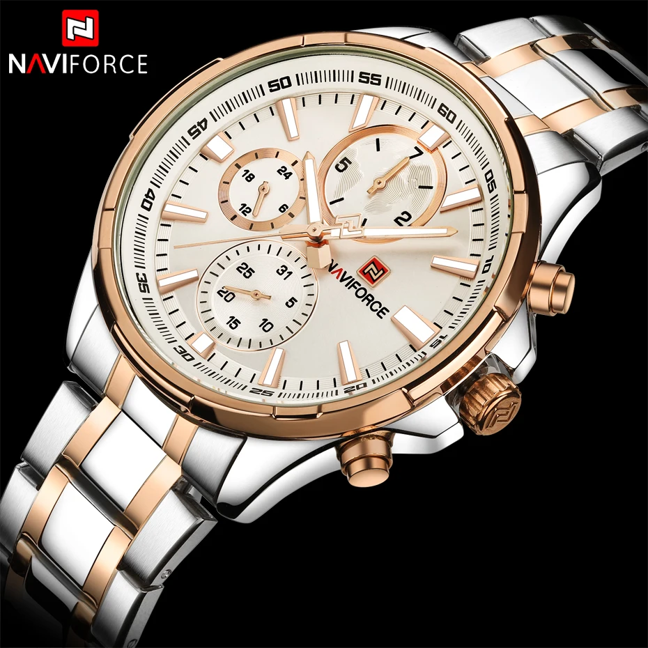 Часы наручные NAVIFORCE Мужские кварцевые, модные повседневные деловые спортивные водонепроницаемые с отображением даты и дня