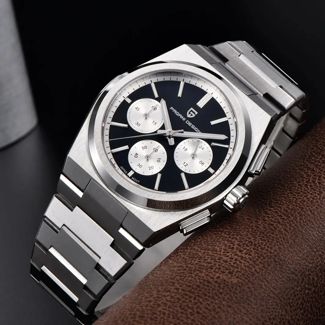 Часы наручные PAGANI DESIGN Мужские кварцевые, спортивные водонепроницаемые из нержавеющей стали с сапфировым покрытием, с AR-покрытием, черные, 2023
