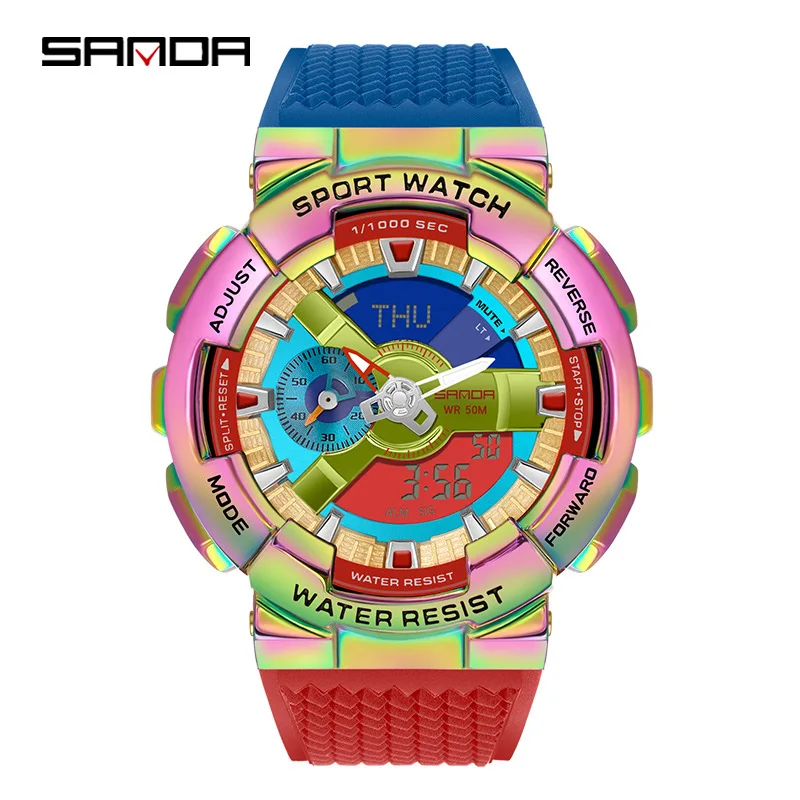 Часы наручные SANDA мужские в стиле милитари, модные спортивные брендовые армейские водонепроницаемые с двойным дисплеем, 2022