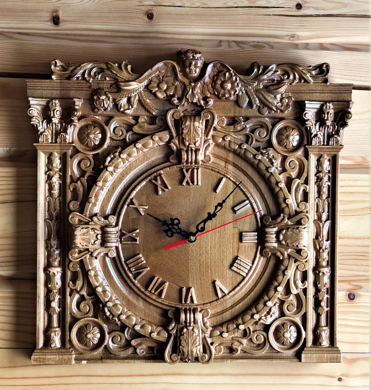 Часы настенные деревянные из дуба 380х380х40 мм