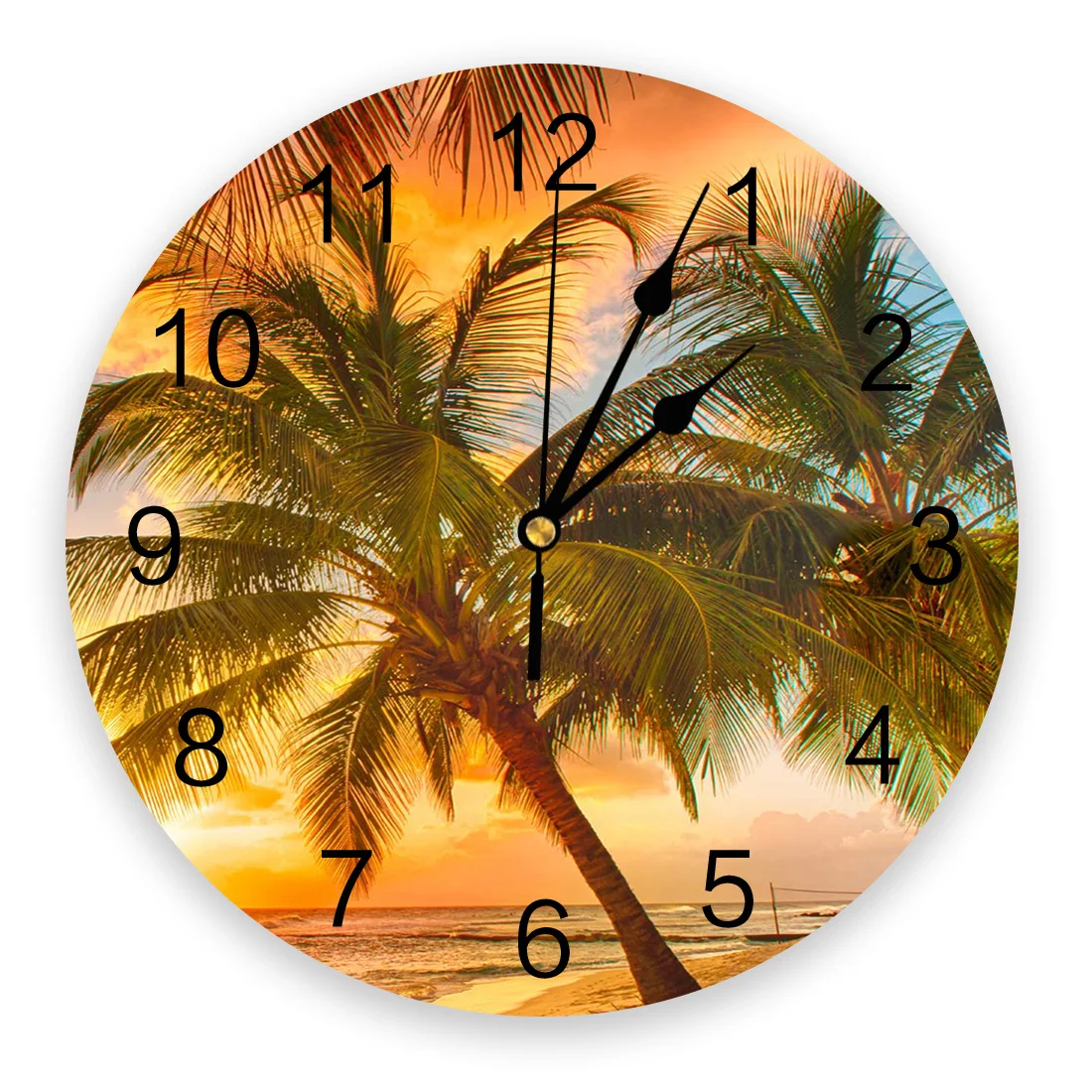 Часы настенные кварцевые с кокосовым деревом, современные украшения для дома, круглые, для гостиной