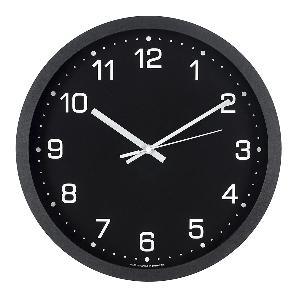 Настенные часы Ночь d30 см черные оснащены кварцевым механизмом с плавным ходом секундной стрелки. Высокая точность хода и низкий уровень шума. Работают от 1 батарейки - 1,5V, АА (в комплект не входит). С обратной стороны имеется отверстие для подвеса на стену. Циферблат с арабскими цифрами.