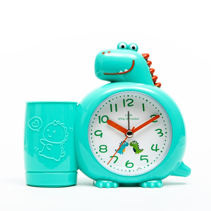 Часы - органайзер с будильником представлены в современном дизайне в форме динозавра, они отлично впишутся в интерьер. Интерьерные часы станут прекрасным декором для дома и дачи, их можно поставить как на прикроватную тумбочку в спальне, детской комнате, гостиной так и на стол или на комод в зале, холле или на кухне. Будильник настольный имеет кварцевый механизм, который гарантирует высокую точность хода. Часы настольные обладают громким будильником, ребенку и вам будет комфортно просыпаться, на работу и в школу. Будильник на батарейках не требует частой замены батареек благодаря экономичному механизму. В карандашнице можно хранить канцелярские принадлежности: цветные карандаши, кисти, ручки, ножницы.Часы настольные на батарейках будут приятным сюрпризом любимому мужу, папе, дедушке, брату, парню на 23 февраля, новый год, новоселье, день рождения или жене, маме, бабушке, сестре, девушке, женщине на любой праздник.