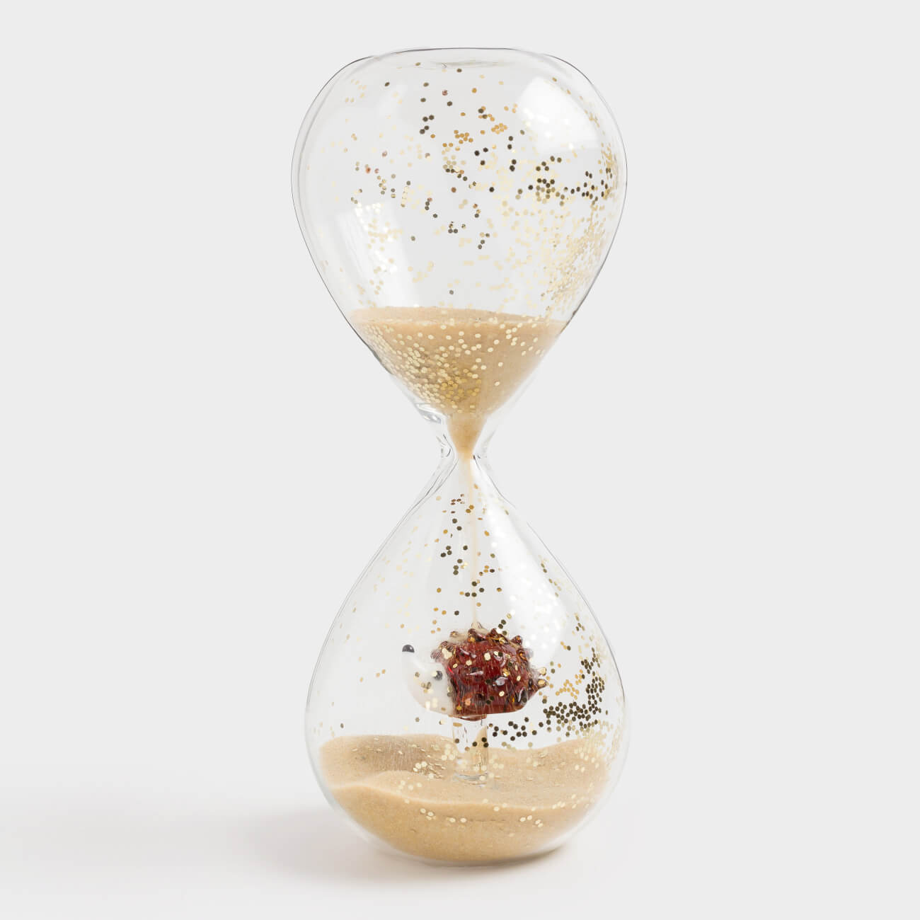 Часы песочные, 16 см, 1 минута, стекло Б/песок, Ежик в золотистом песке, Sand time