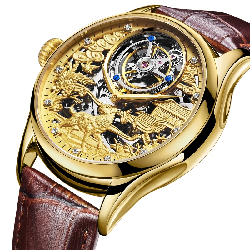 Часы Aesop Мужские механические водонепроницаемые с сапфировым стеклом и кожаным ремешком