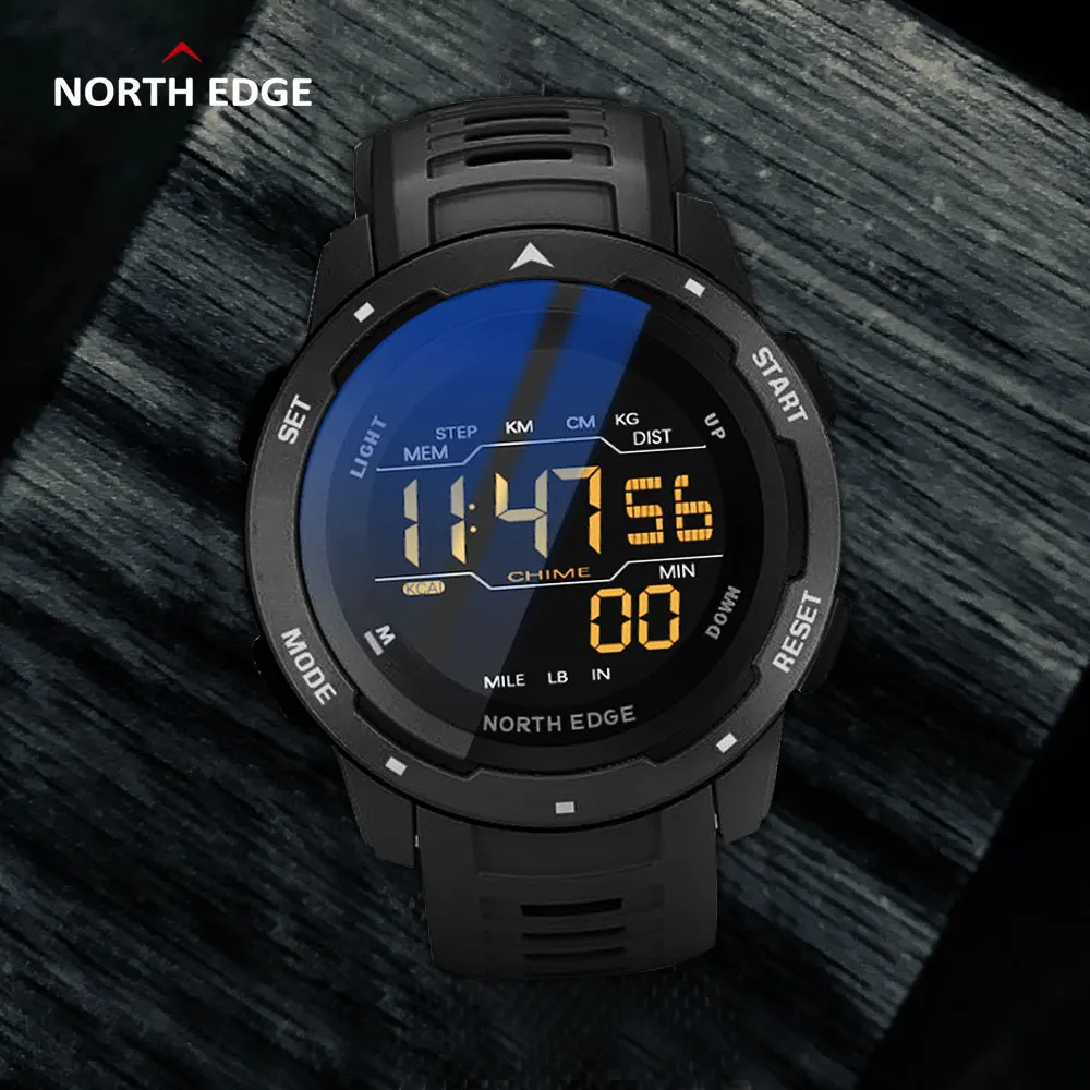 Часы NORTH EDGE мужские цифровые спортивные, спортивные с двойным шагомером и будильником, водонепроницаемые цифровые в стиле милитари, 50 м