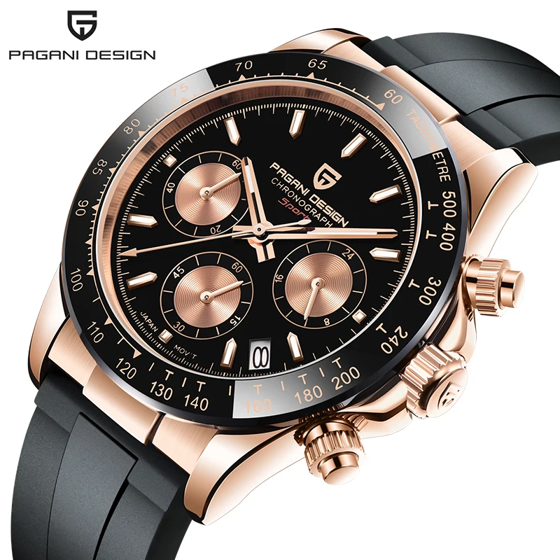Часы PAGANI DESIGN Мужские кварцевые, водонепроницаемые до 100 м, спортивные часы с роскошным сапфировым стеклом и резиновым ремешком, мужские часы...