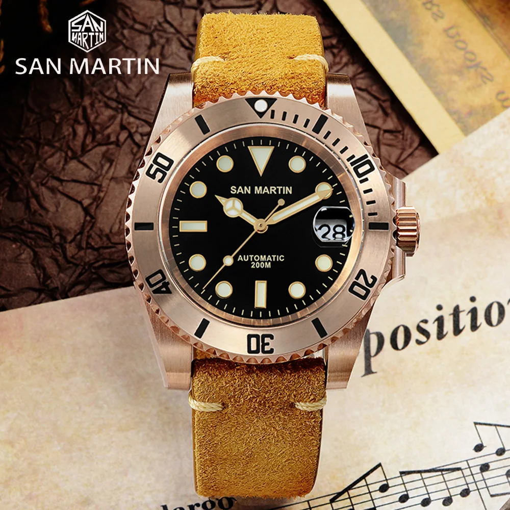 Часы San Martin Мужские механические с сапфировым стеклом, водонепроницаемые до 200 м