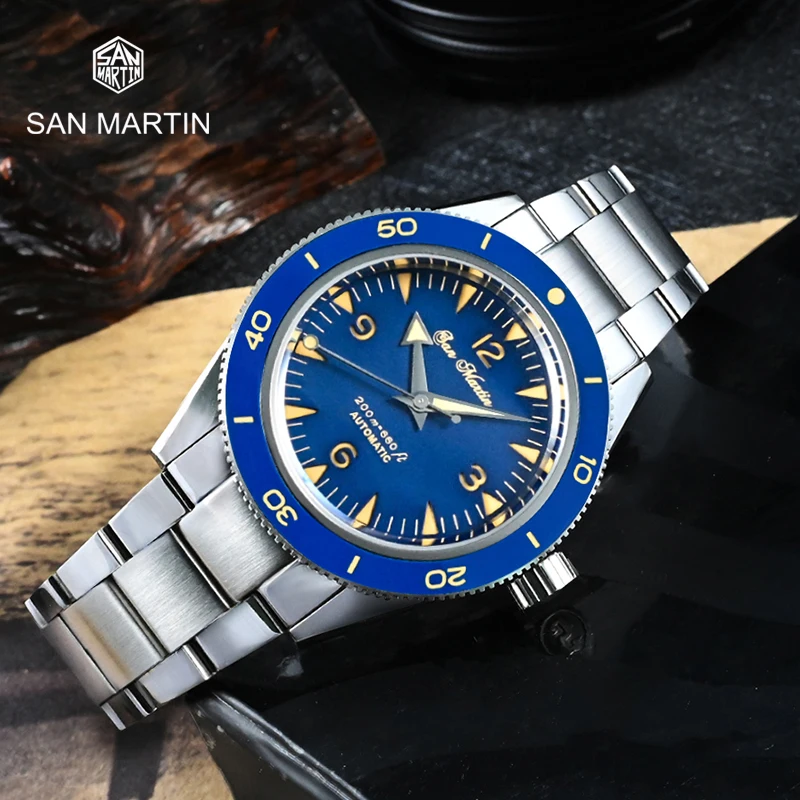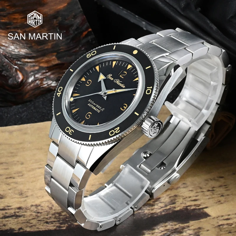 Часы San Martin мужские механические Автоматические, винтажные, 39,5 мм, с сапфировым циферблатом