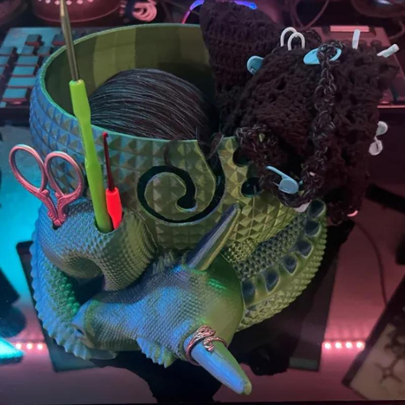 Чаша для пряжи для вязания крючком в форме драконьего яйца, диспенсер для пряжи из смолы, многофункциональная чаша, держатель и место для хранения пряжи для вязания крючком зелёный