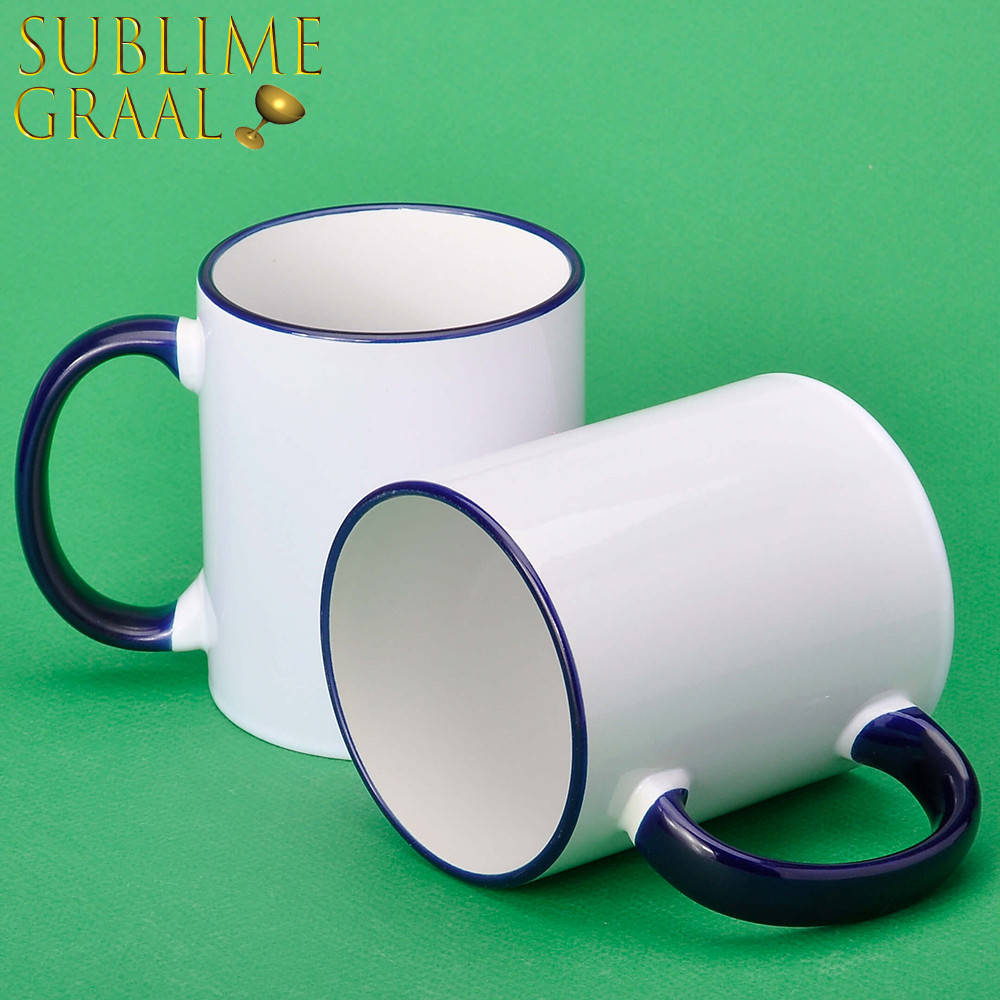 Чашка белая. Кобальт ободок и ручка, сублимационная 330 мл, Белый