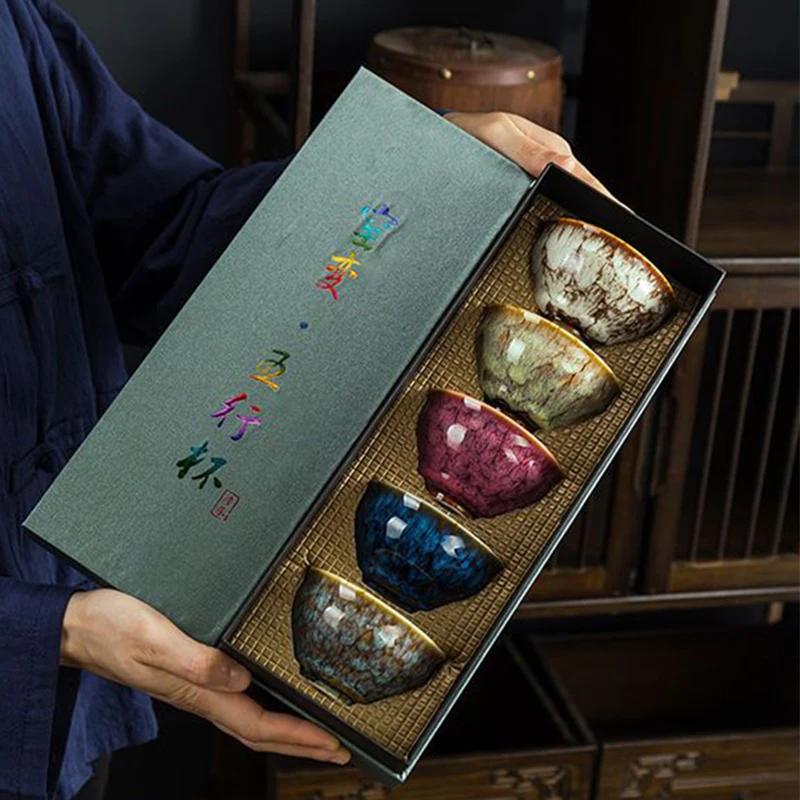 Чашка для смены печи Five Elements, металл, дерево, вода, огонь и земля, большой набор для чая, китайская керамическая чашка для чая в стиле кунг-фу 120ml