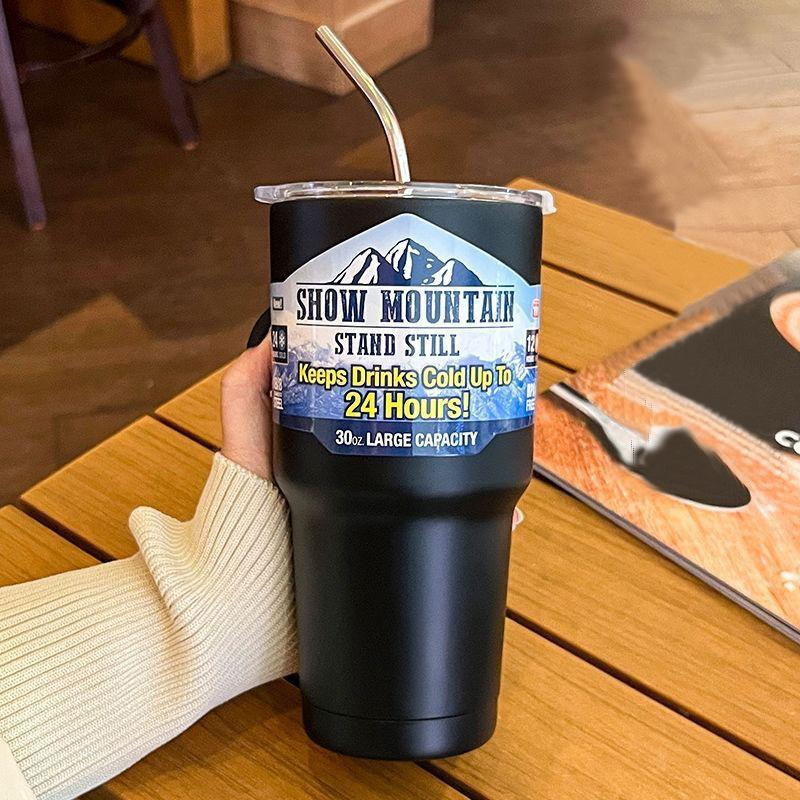 Чашка-термос из нержавеющей стали 304, большая емкость, автомобильная кофейная чашка с соломенной чашкой для воды, чашка для льда, охлаждающая чашка, автомобильная кофейная чашка black чёрный