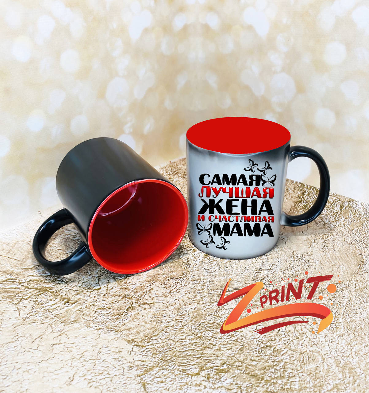 Чашка хамелеон для жены " Самая лучшая жена и счастливая мама", Черный