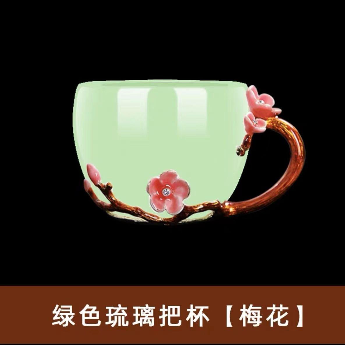 Чашки для кофе, чашка для чая «Цветок сливы», емкость 150 мл, розовое стекло, большая емкость, кофейная посуда для завтрака с защитой от капель