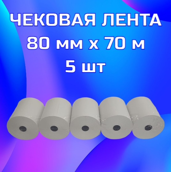 Чековая лента 80мм x 70м, втулка 16мм, термо, 48г/м², черная печать, 5 рулонов Bankonika (80705)
