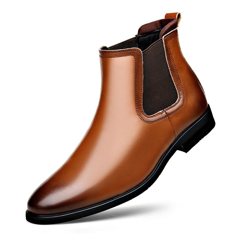 Челси остроносые кожаные ботинки модные простые эластичные ботинки для ног корейская версия британского стиля мужские деловые ботинки очень большого размера мужская обувь 48 коричневый